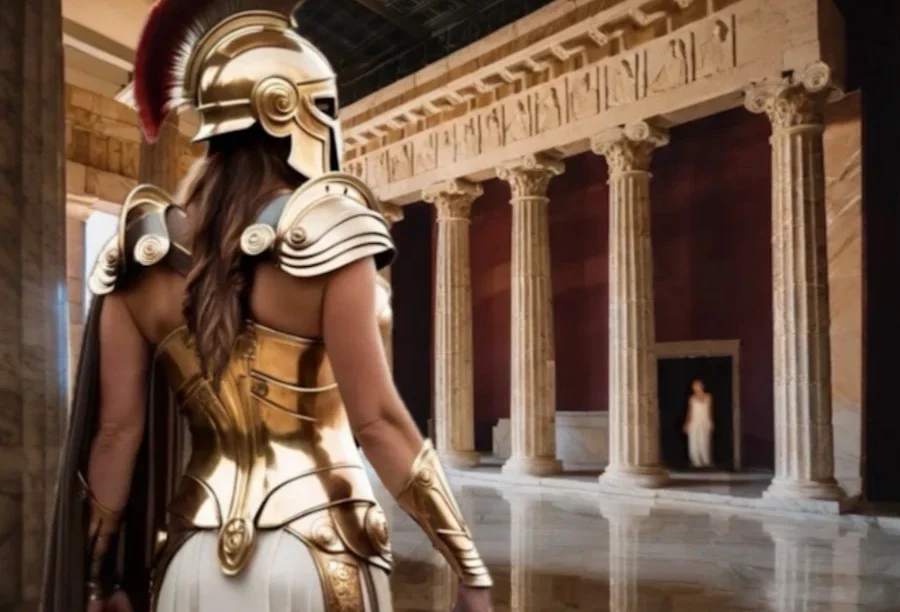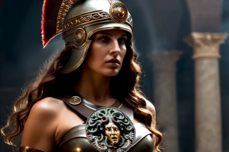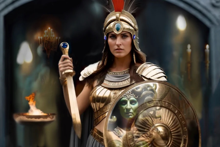 Perseus set out on his quest, but not alone. Being a son of Zeus, he had the support of his father and, crucially, of the goddess of strategic warfare and wisdom, Athena, who accompanied him on his adventure. She gave him her polished, highly reflective shield and advised him not to look at Medusa directly, but only at her reflection.