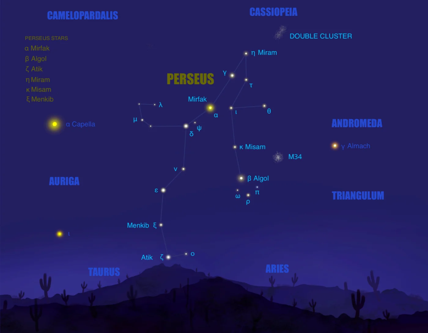 - It contains the famous eclipsing binary, Algol, the Daemon Star.