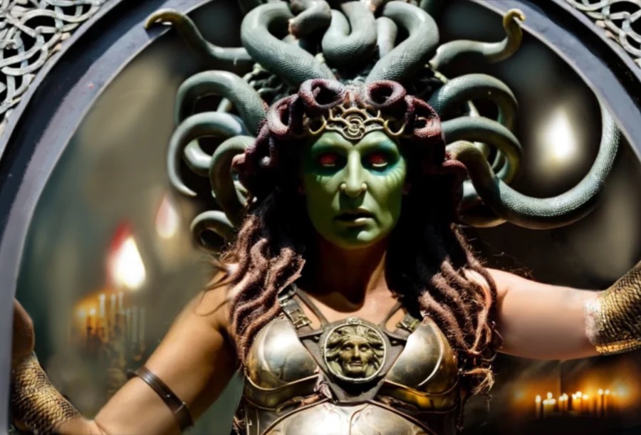 The frigid stare of Athena convinced Medusa that the goddess knew about her sin and that her punishment was imminent.