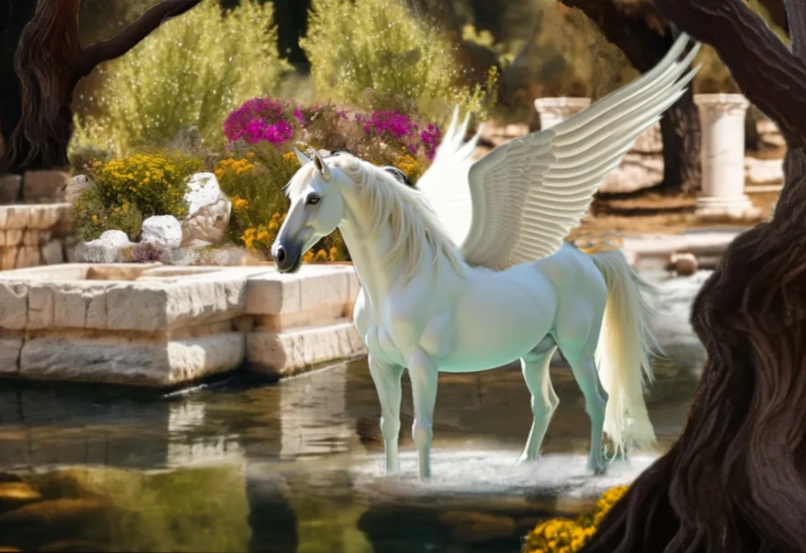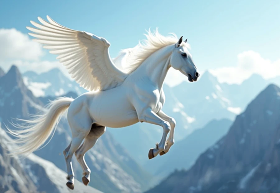 Pegasus is the iconic winged horse of Greek mythology. His mother was the gorgon Medusa. There were three Gorgons. Stheno, Euryale, and Medusa. The first two were immortal. They were hideous female monsters, so terrifying that they invariably turned anyone who looked at them to stone.