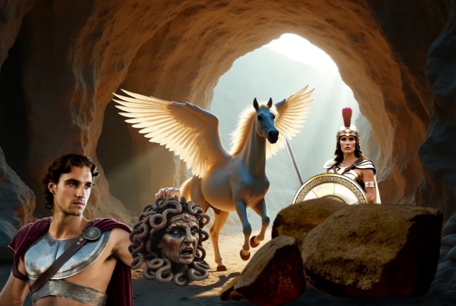 Pegasus sprung from his mother’s blood inside the cave with his brother, the warrior Chrysaor, an ancestor of many monsters.