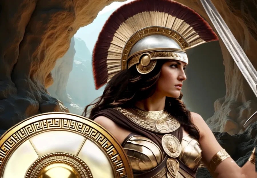 One day, while visiting Corinth, he saw Pegasus on the Acropolis of Corinth, drinking water from his favorite fountain, Peirene, sacred to the Muses. As Pegasus was drinking, Bellerophon threw over his head a golden bridle, a gift from Athena, and managed to capture and ride him. Their first exploit would be the slaying of the monster Chimera, a fire-breathing monster with a lion’s and a goat’s head and a dragon’s tail.