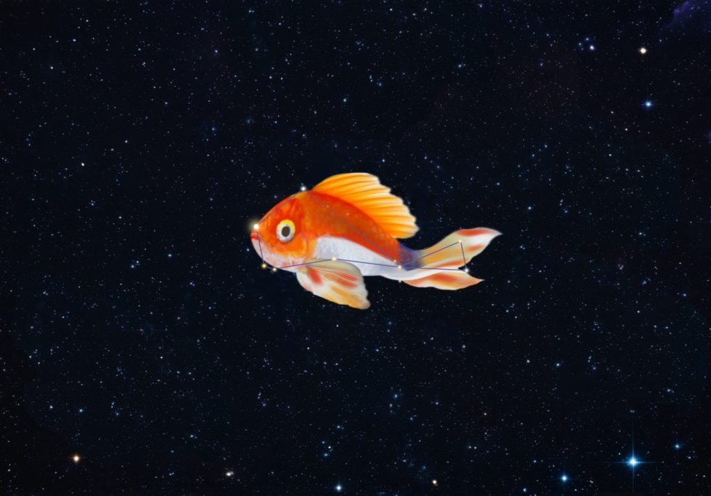 Like fish, we have to dive deep into mythology to ascertain the origins of this small but prominent constellation. There, at the very bottom of mythology, we find the oldest piece of the puzzle. The story starts with the fight between the gods and the Titans.